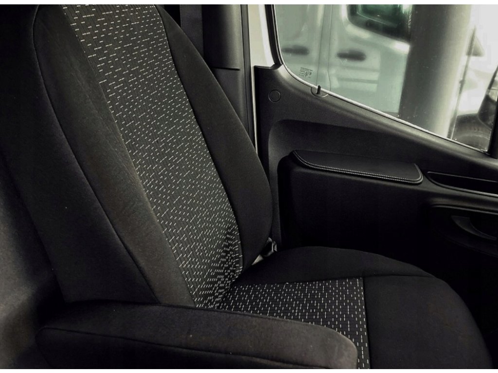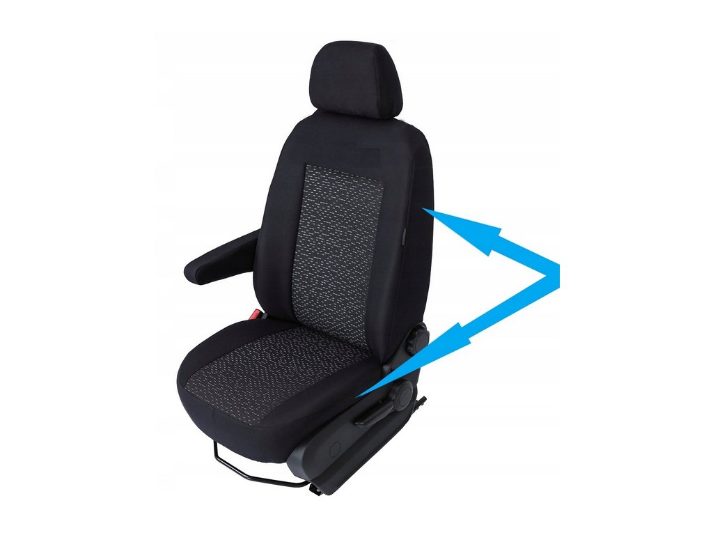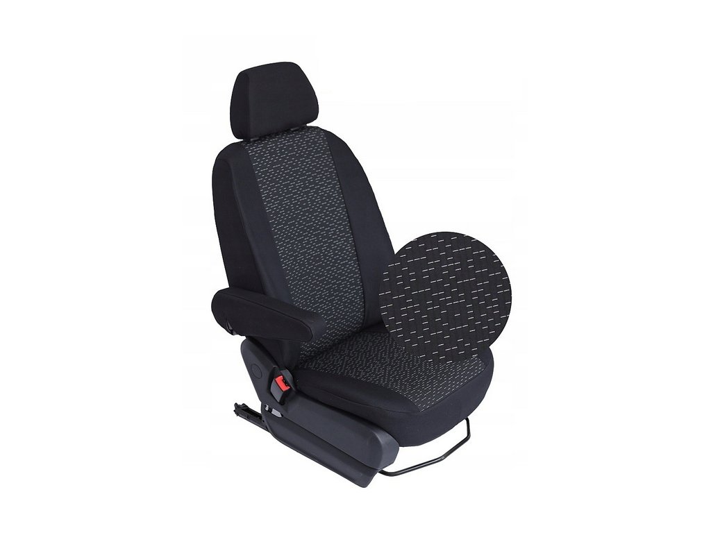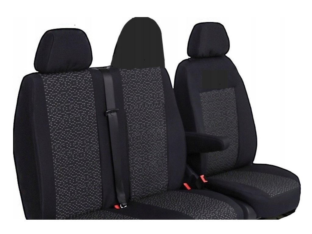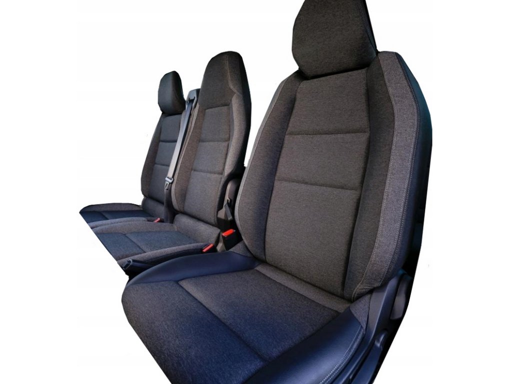 - V prednom rade (2+1) – Poťah na sedadlo vodiča s výrezom v operadle pre opierku na ruku, zapínanie na suchý zips, poťah na opierku na ruku vodiča, poťah na dvojité sedadlo spolujazdca, skladajúce sa zo dvoch častí: "letecký" stoleček a tradičné sedadlo s nastaviteľnou opierkou hlavy; zapínanie na suchý zips, dvojité sedadlo delené na polovicu s prístupom k úložným priestorom, poťahy na opierky hlavy