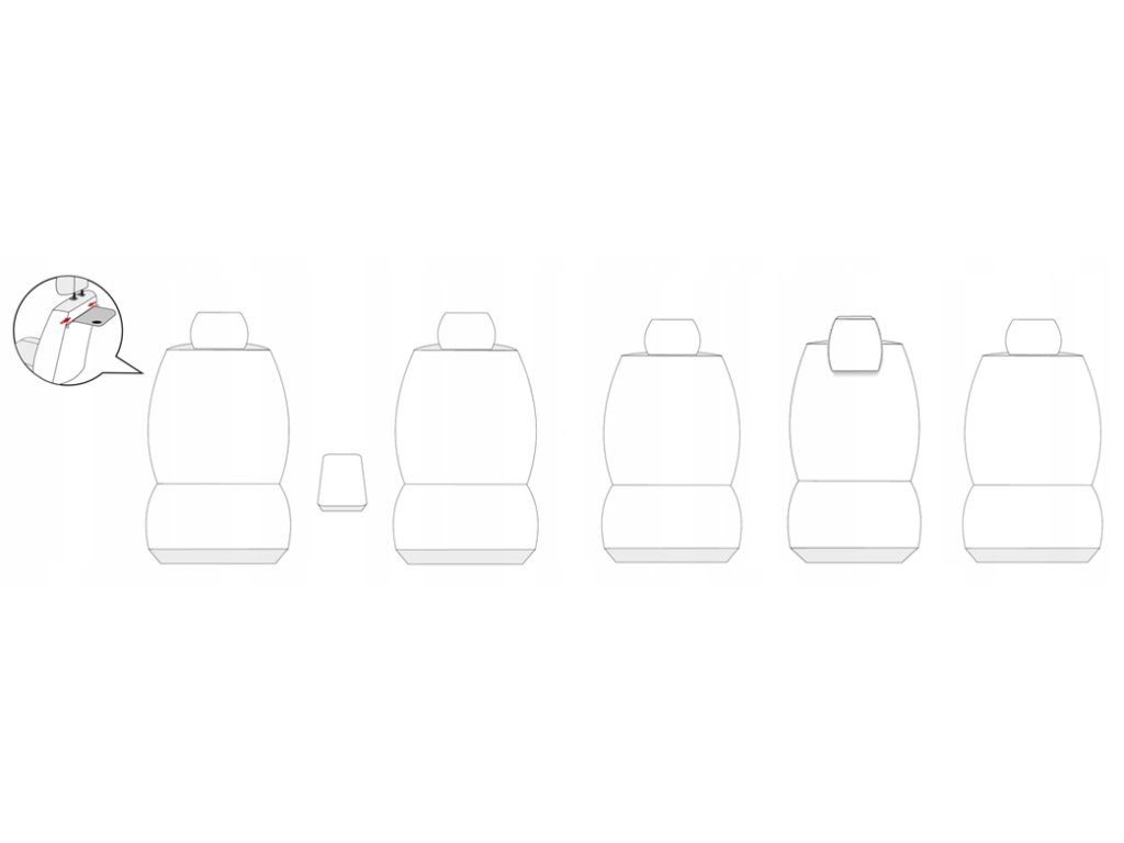 - druhý rad: 3 poťahy na sedadlá, 3 opierky hlavy (2 štandardné a 1 prekrývajúce operadlo)