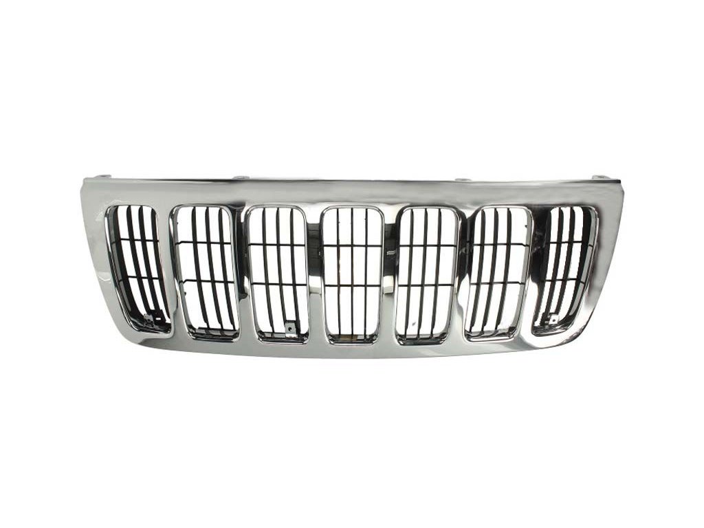 › BODYWORK › Front Grilles - new › Přední maska, mřížka chladiče (LAREDO, kompletní, chrom/černá) JEEP GRAND CHEROKEE II WJ 10.98-09.05